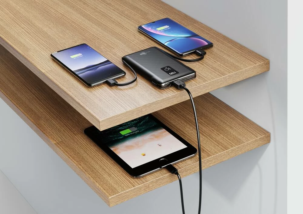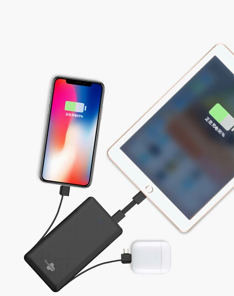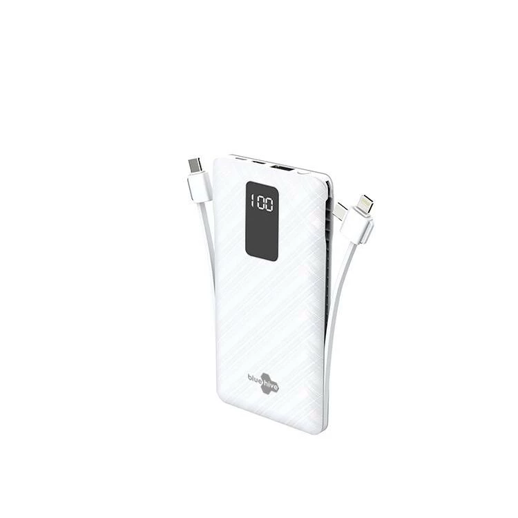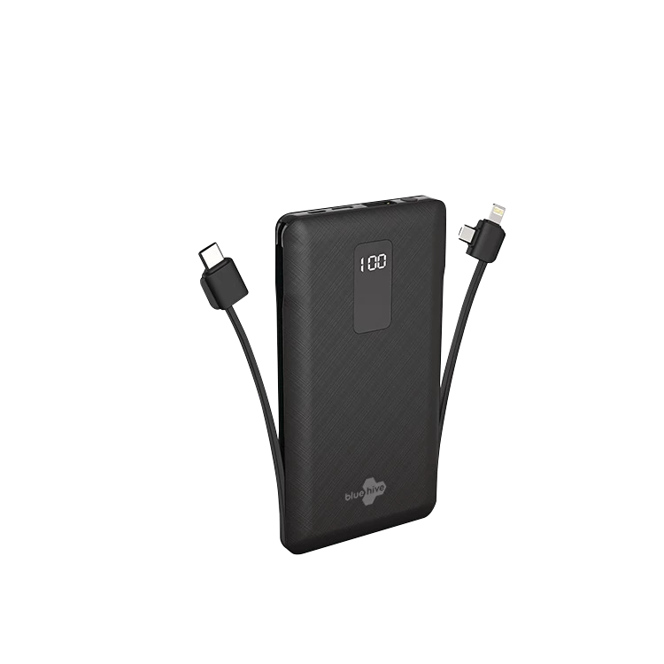 - Bluehive 10,000 mAh Power Bank with Built-in Cable fully charges an iPhone 13 approximately 2 times