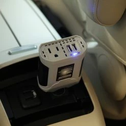 From road trips to long commutes, you can keep all of your devices charged in your vehicle thanks to the Bluehive 120W Inverter with Dual USB. This car charger adapter converts 12V DC battery power to 120V AC household electrical power. Built with 2 USB ports and 1 Type-B outlet, this 120W inverter charges up to 3 devices simultaneously. It works well as an smartphone car charger and is also compatible with other smartphones, computers, cameras, and tablets. The fast-charge USB 2.0 (2.1A output) ports of this USB car charger will charge phones and tablets quickly. This compact, easily portable car phone charger may be used in cars, trucks, boats or SUVs. With the help of this useful car charger, you’ll always have a power source when you’re on the go, keeping you connected, in the moments that matter most.