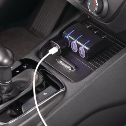 - Bluehive 12V 3-Socket with USB Port features a LED power indicator that displays power status