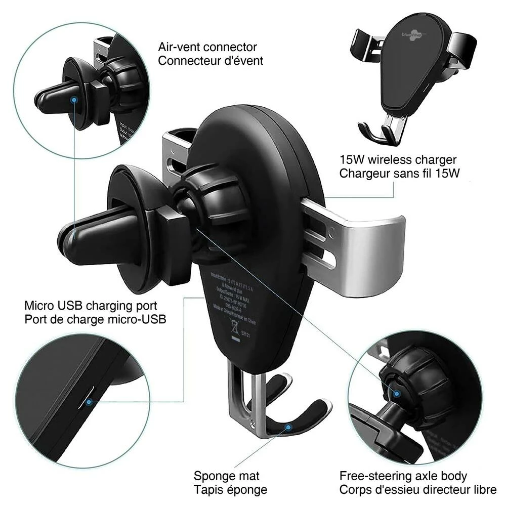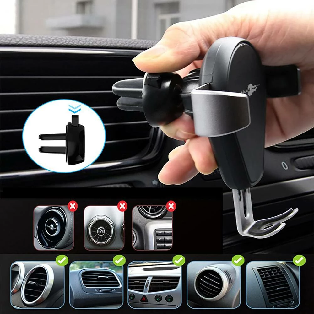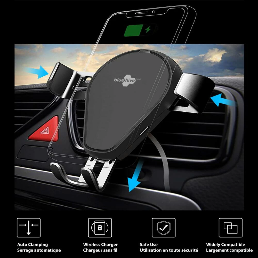 - Bluehive Wireless Charging Vent Mount with Gravity Arms can simultaneously hold and wirelessly charge your phone