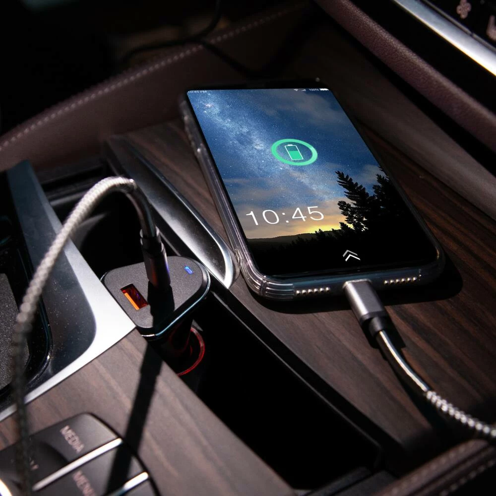 - Bluehive 18W Type-C PD Car Charger with Lightning Connector can charge two devices at the same time