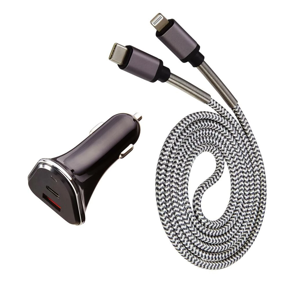 - Includes a braided type-C to lightning cable