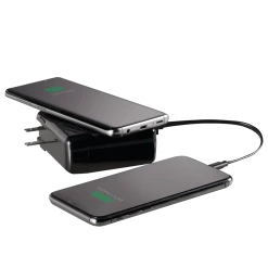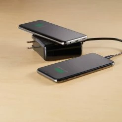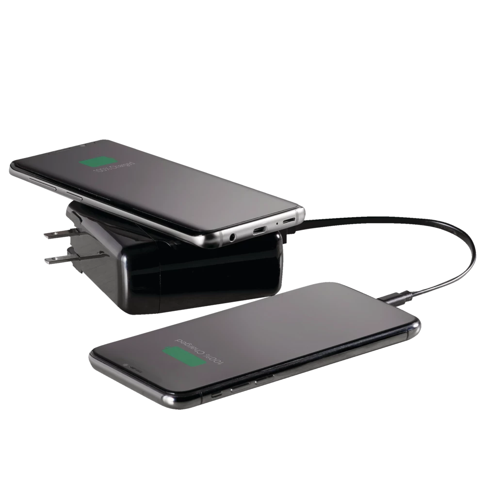 - Charge multiple devices simultaneously with both wired and wireless charging options