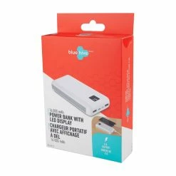 - Bluehive 3-Port 16,000 mAh Power Bank with Digital Screen is designed with a carbon fiber finish