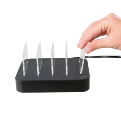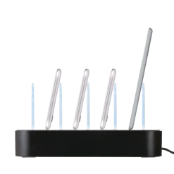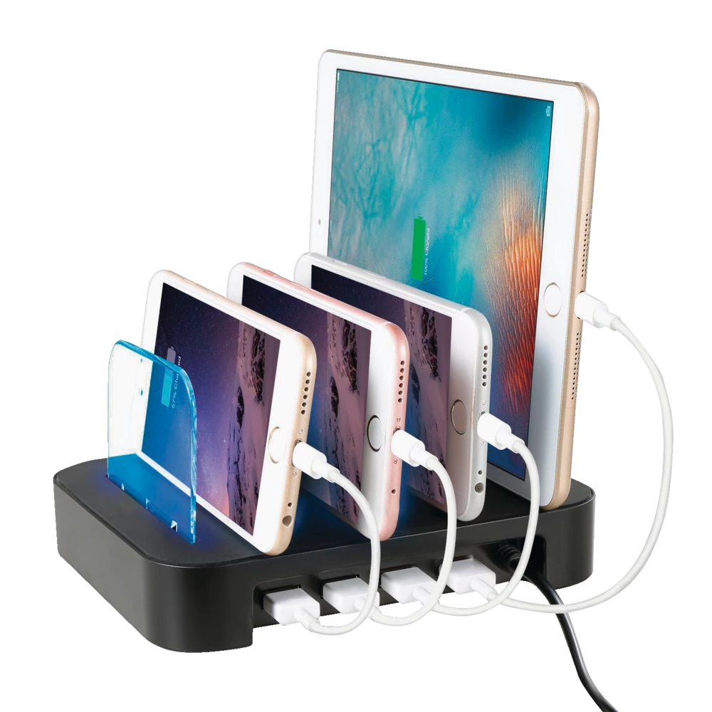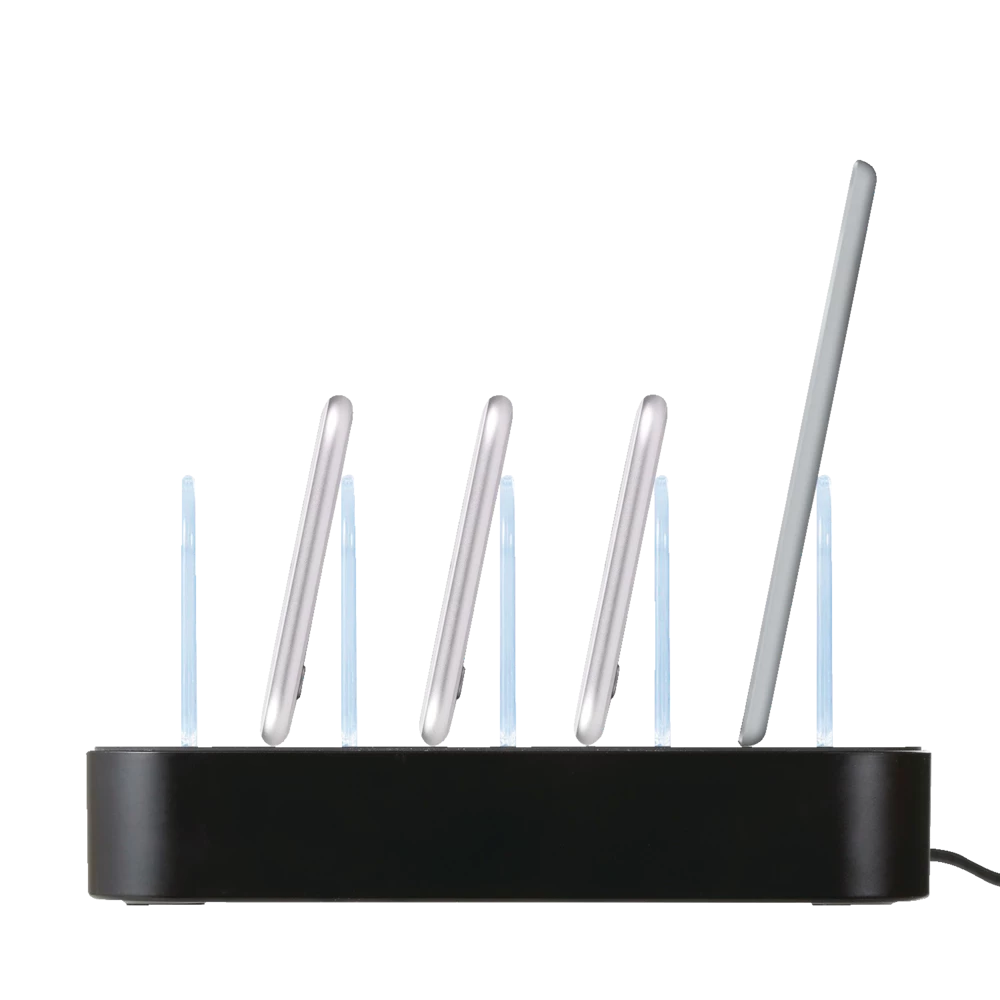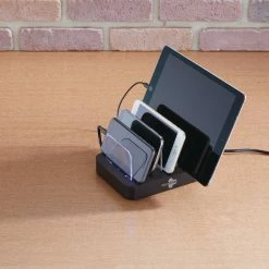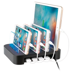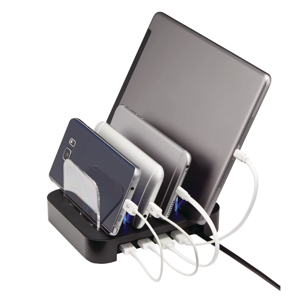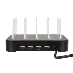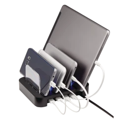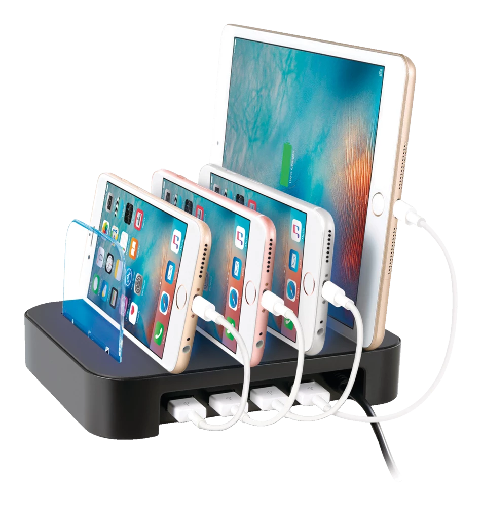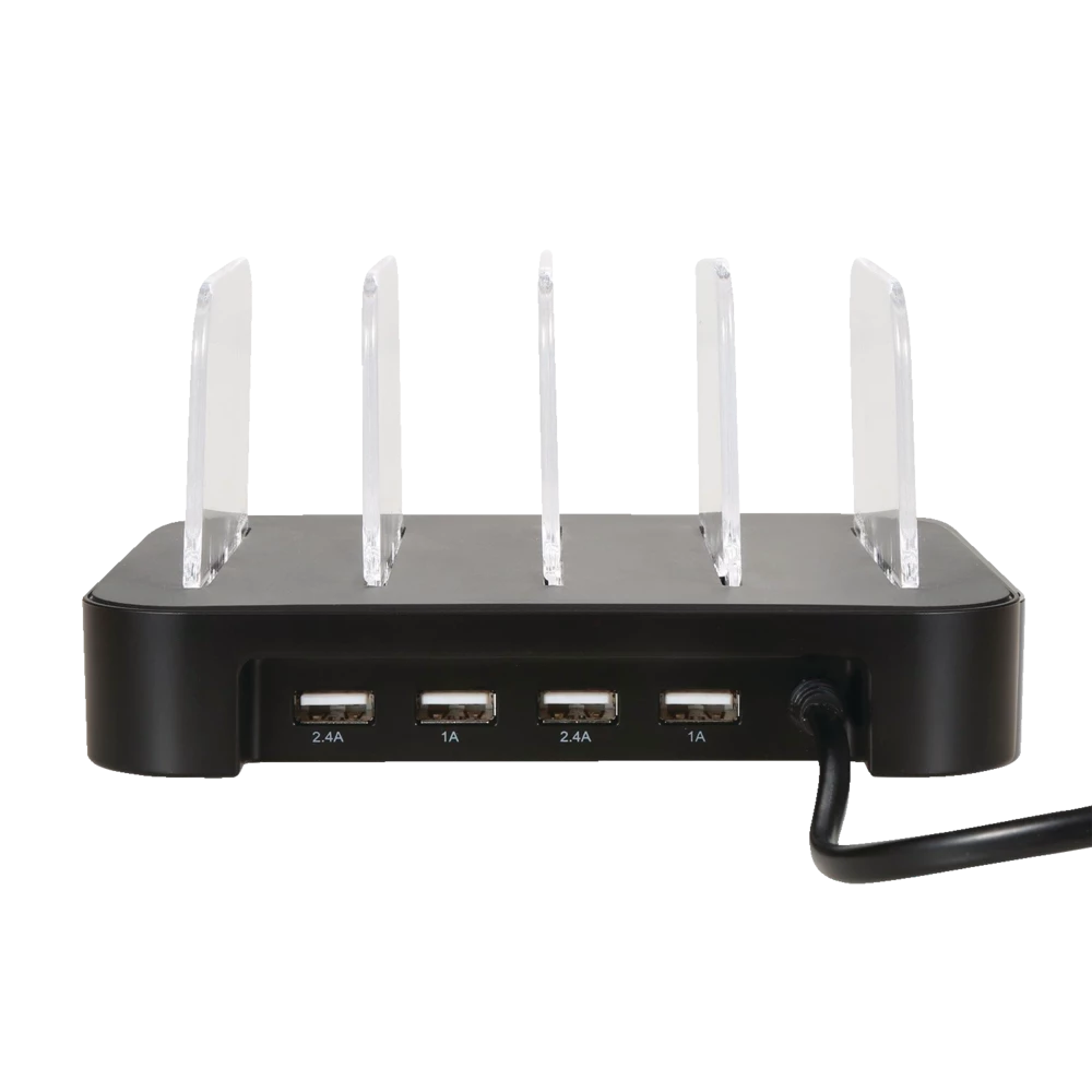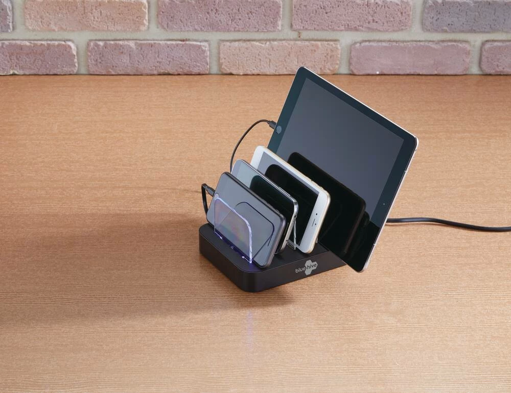 Create a convenient, centralized charging area with the Bluehive 4-port Power Station. This charging station charges up to 4 devices simultaneously, providing desirable efficiency. Within this charging hub you’ll have 2 ports for 2.4A charging and 2 ports for 1A charging, resulting in 6.8A of total power. Smart charging technology identifies the devices in the portable power station, resulting in a fast charge. An LED power indicator light indicates when the power station is charging, then shuts off when a charge is complete. Removable dividers keep devices separated, allowing you to keep your workstation organized and your cords tangle-free. This device is compatible with smartphones, tablets and many other devices that charge with a USB charger. Thanks to this power station, you’ll enjoy a neatly arranged charging setup at the office or at home. Keeping you connected, in the moments that matter most.