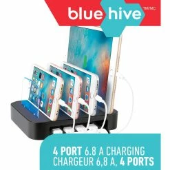 - The Bluehive 4-port Power Station allows you to organize your workspace and cut down on clutter while keeping your devices powered up
