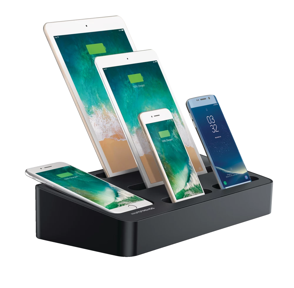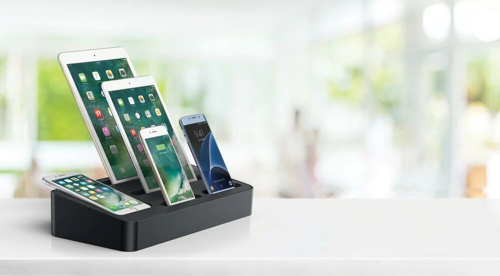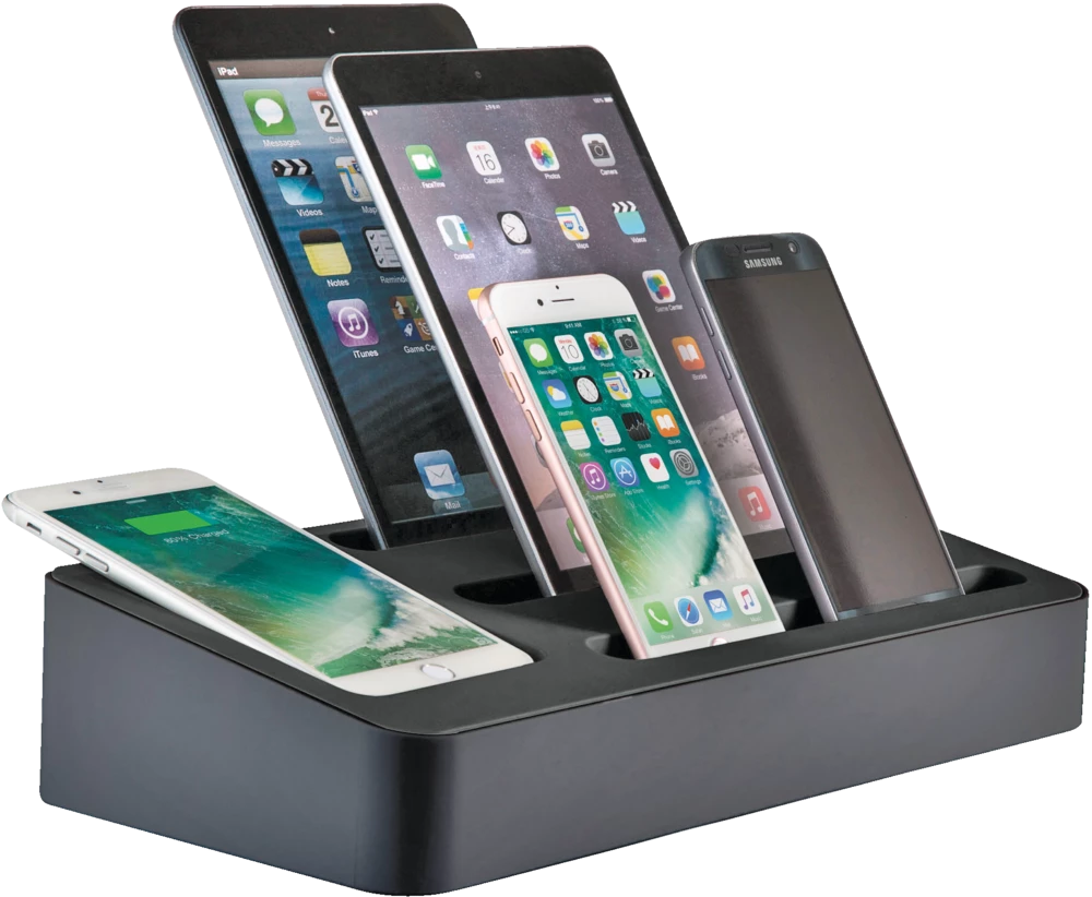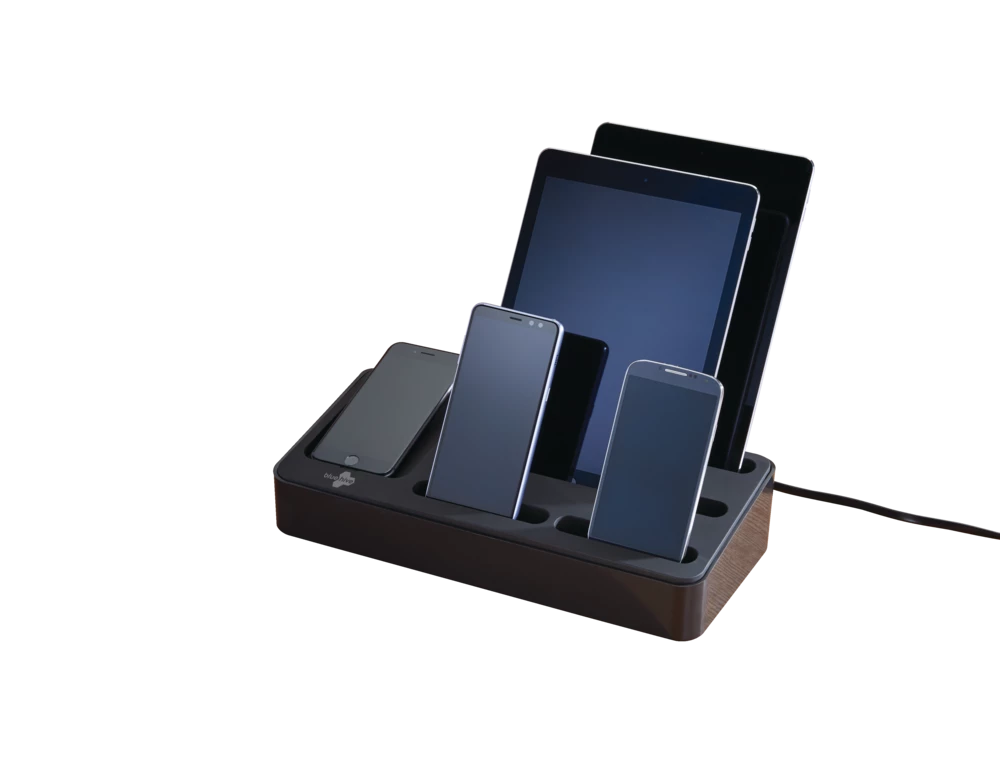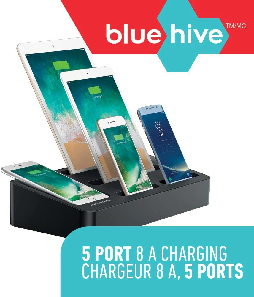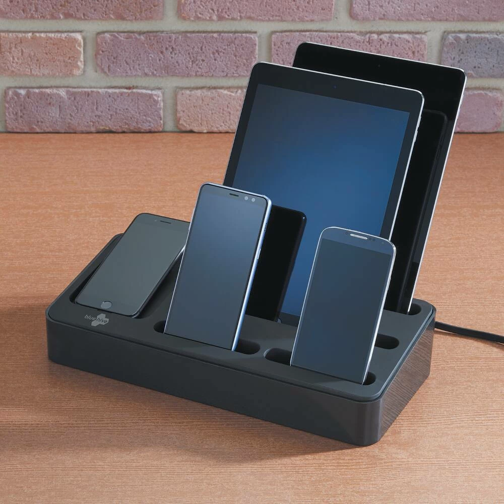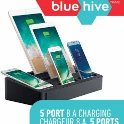 - Bluehive 5-Port Charging Valet Station is powerful enough to charge two tablets and six smartphones at the same time