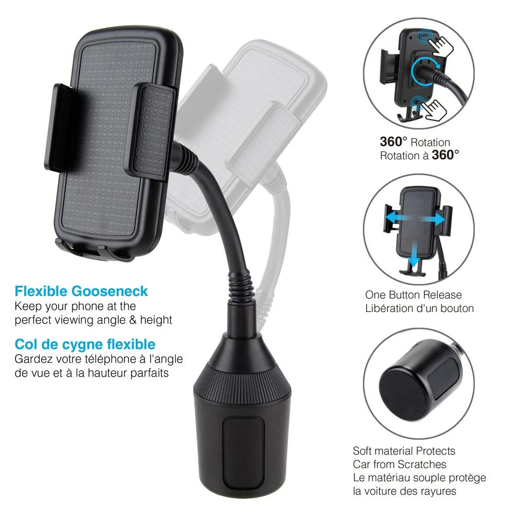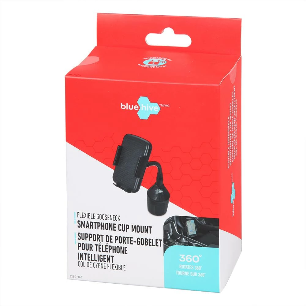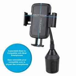 Equip your vehicle for the journey ahead with the Bluehive Cup Holder Phone Mount for Most Smartphones and Other Portable Devices, with Flexible Gooseneck & 360° Rotatable Cradle. This cup holder phone mount can rotate 360 degrees, allowing the phone to be positioned vertically or horizontally. Thanks to a universal design, this phone mount accommodates most smartphones and other portable devices. It adjusts from 4.7-5.5″ (12-14cm) in height and 2.2-3.7″ (5.5-9.5cm) in width, allowing devices of various sizes to fit in the phone holder. This cup phone holder for car trips easily fits in most vehicles. Soft rubber padding on this car phone holder ensures that your device will be protected and scratch-free. An open design allows you to stay charged while using this cup phone holder, enhancing your navigation experience while keeping you connected, in the moments that matter most.