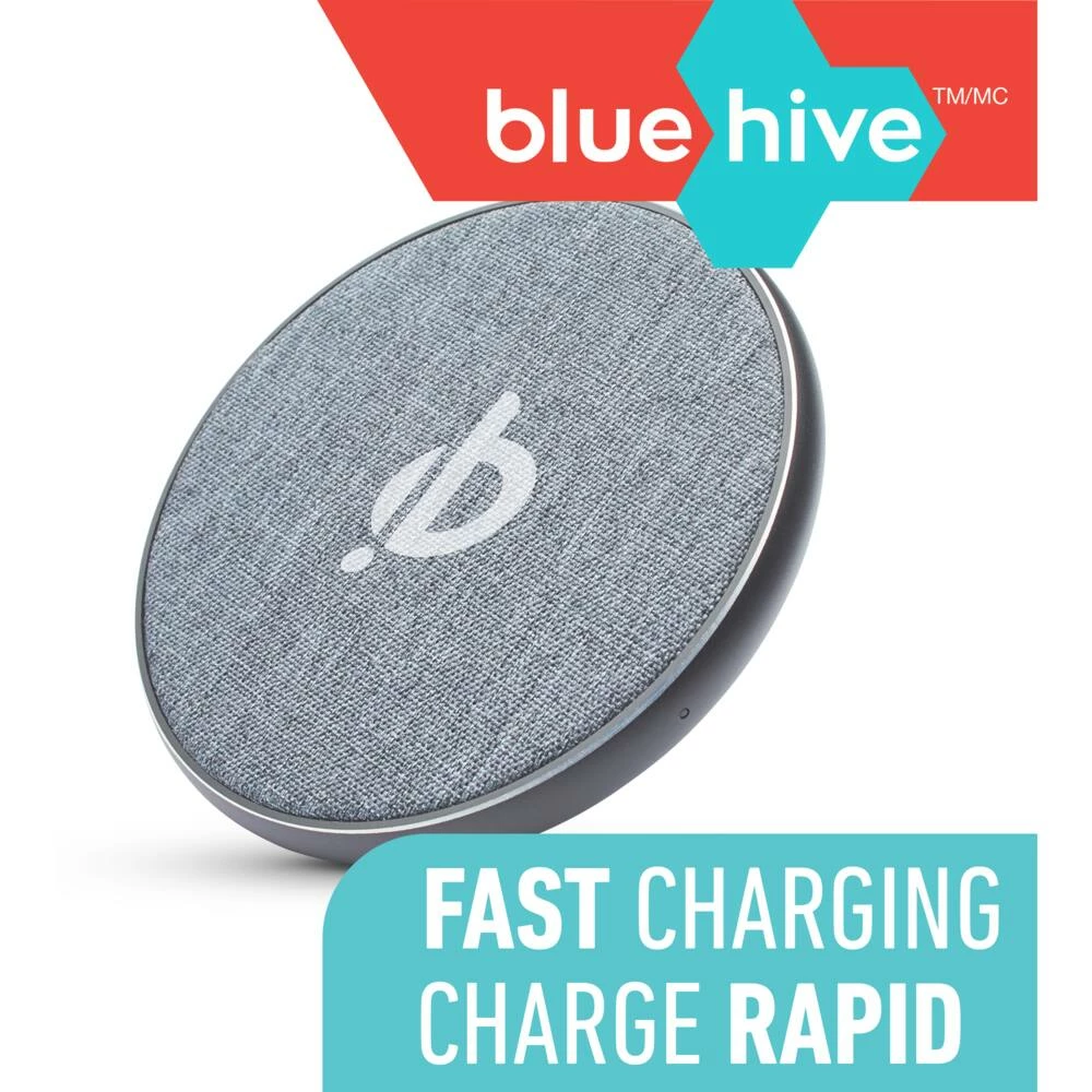 - The Bluehive Fabric Wireless Charging Pad quickly charges your phone while lending beauty to your home or office space