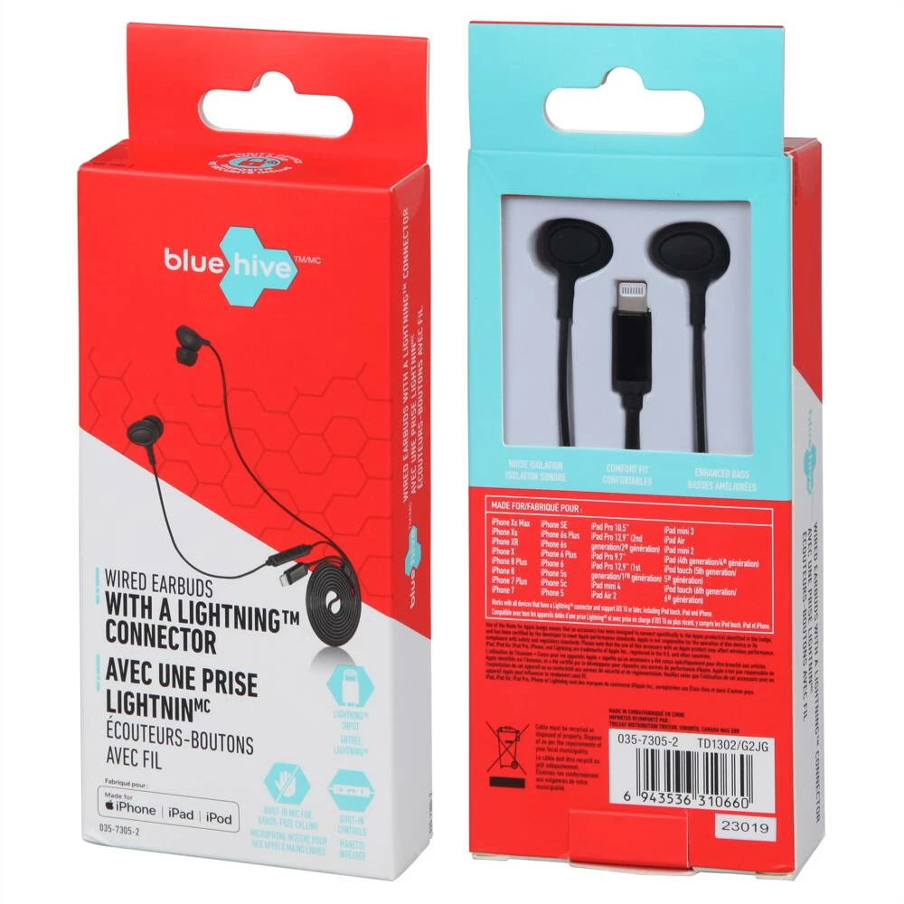 - Bluehive Lightning Earbuds feature built-in controls for answering/ending calls, playback of music and adjusting volume on connected devices