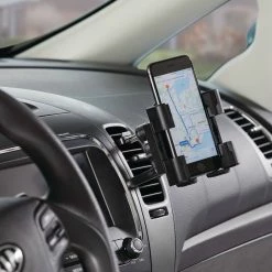 Hit the road and stay prepared with the Bluehive Universal Vent Phone Mount for Most Smartphones and Other Portable Devices. This vent phone holder can rotate 360 degrees, allowing the phone to be positioned vertically or horizontally. Thanks to a universal design, this phone stand accommodates most smartphones and other portable devices. It adjusts from 1.4-3.7″ (3.5-9.5cm) wide, allowing devices of various sizes to fit in the phone mount. This phone holder attaches to a vent with a sturdy clamp. Soft rubber padding on this car phone holder ensures that your device will be protected and scratch-free. An open design allows you to stay charged while using this vent phone mount, improving your navigation experience while keeping you connected, in the moments that matter most.