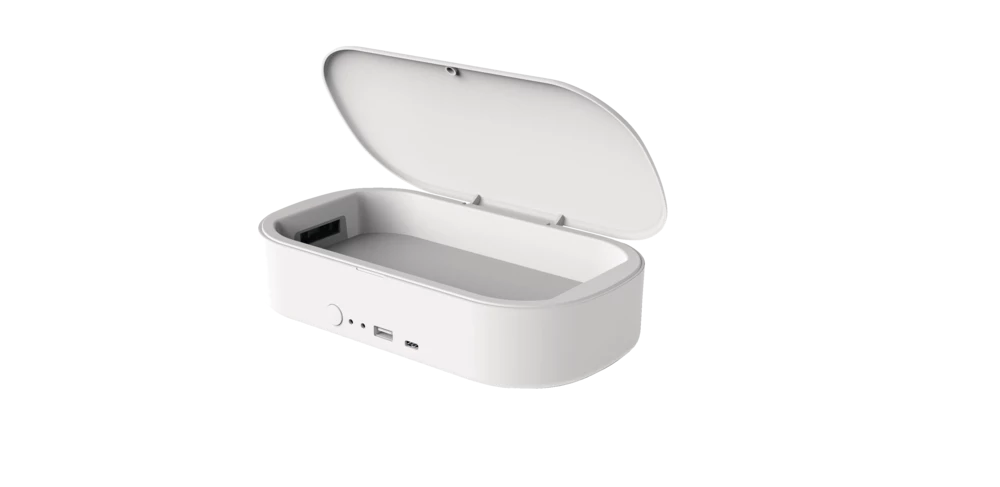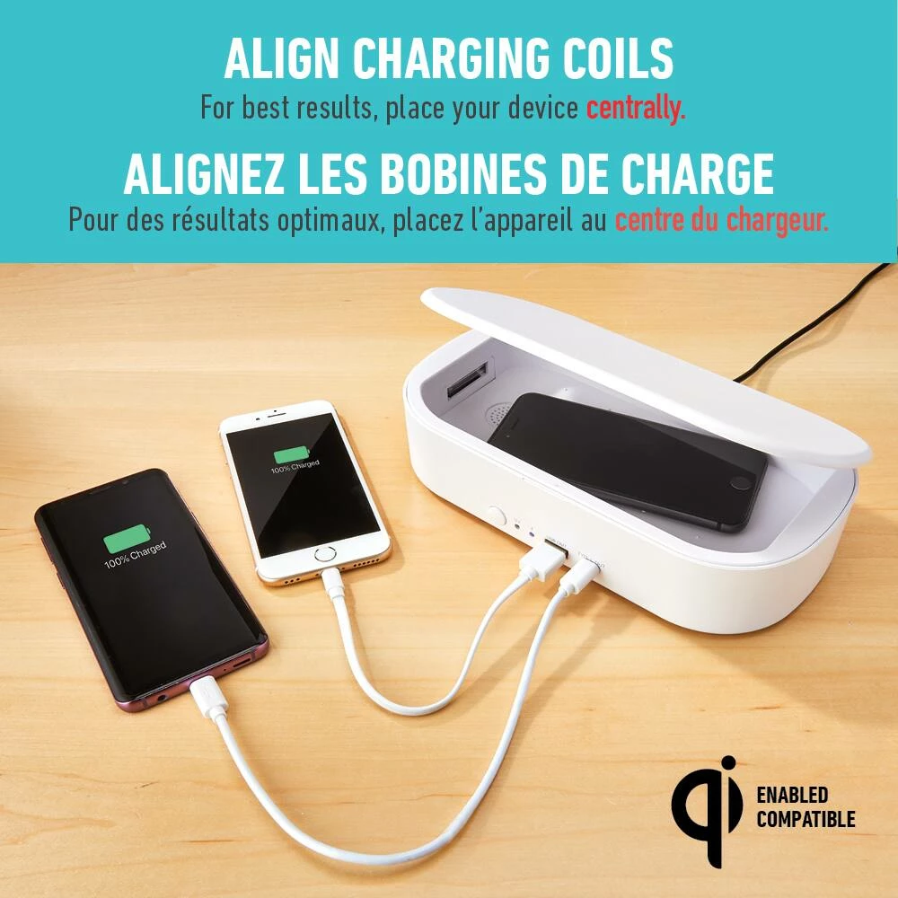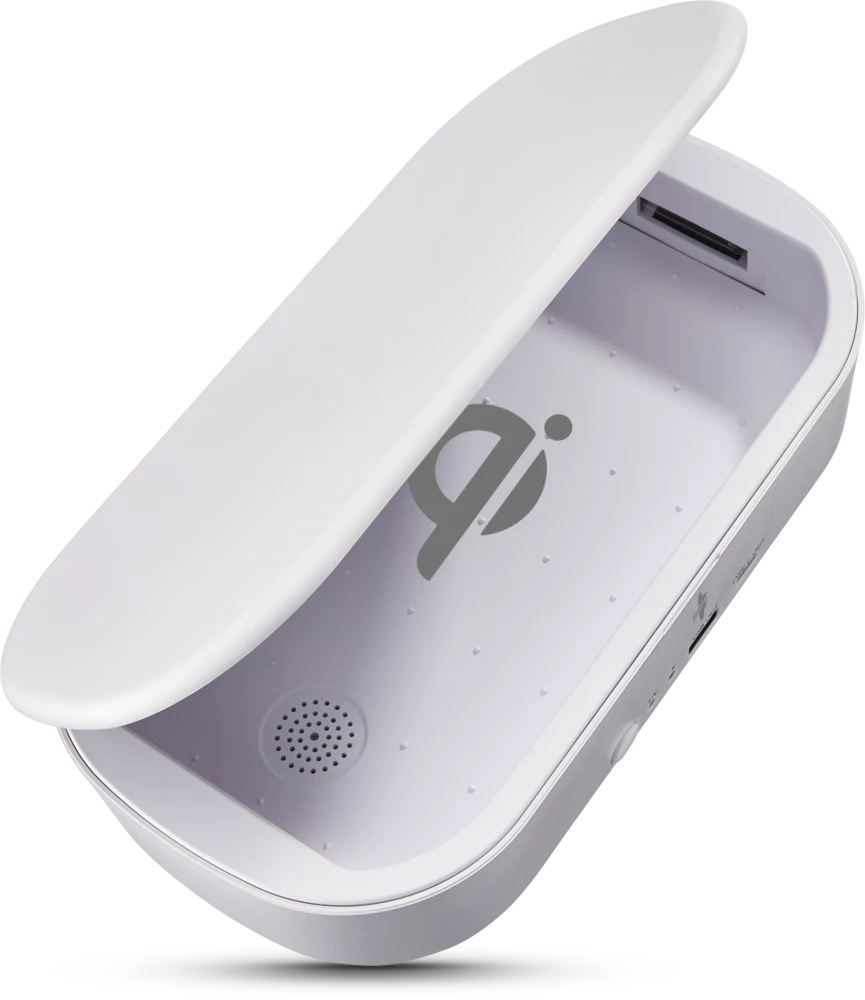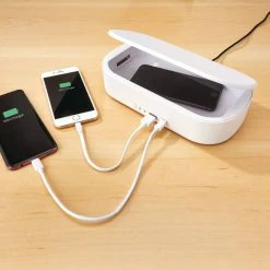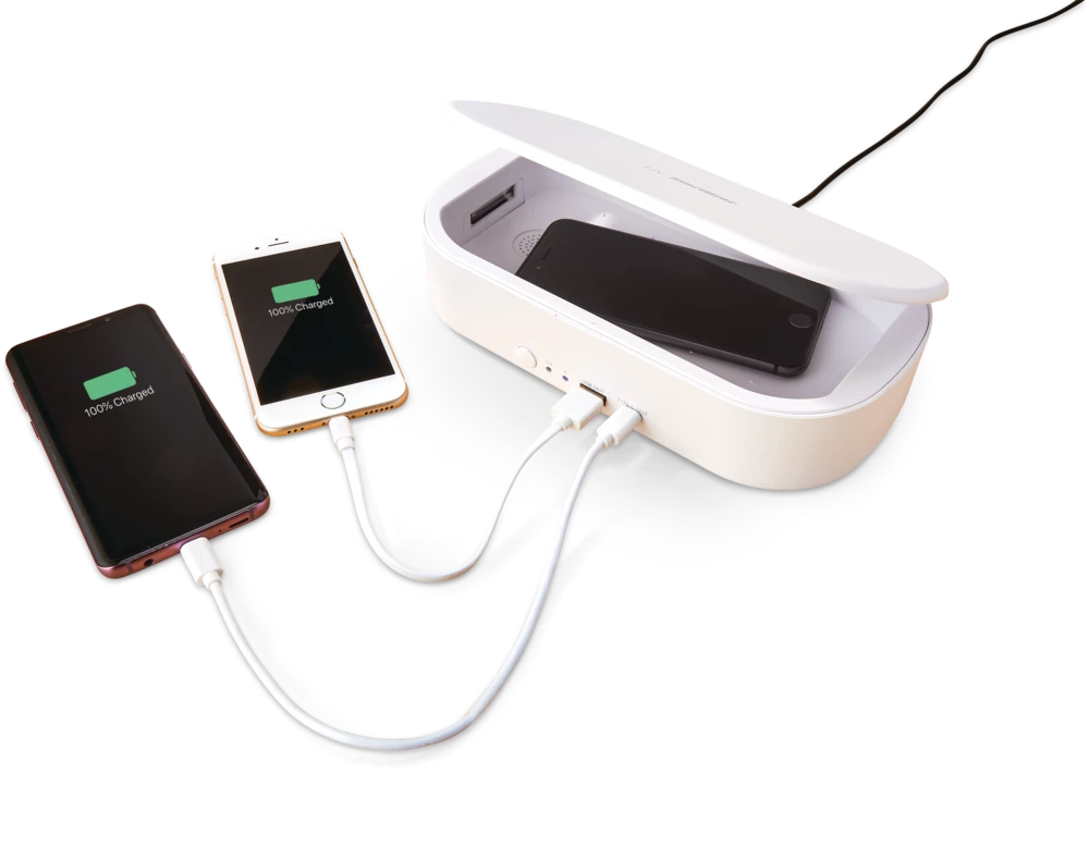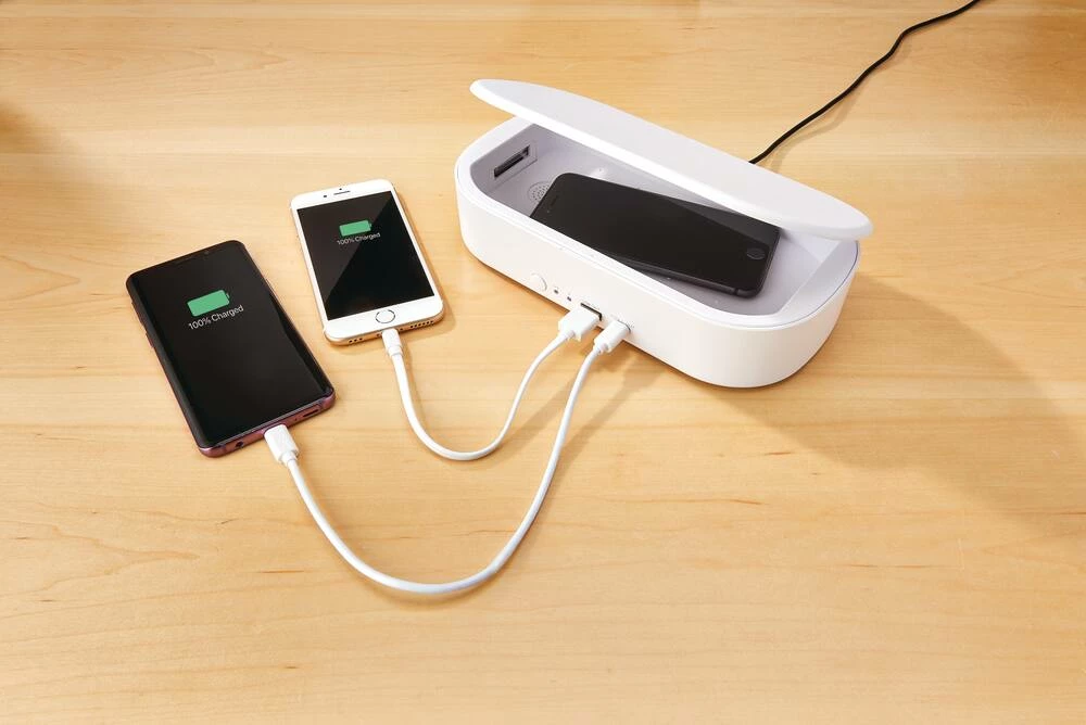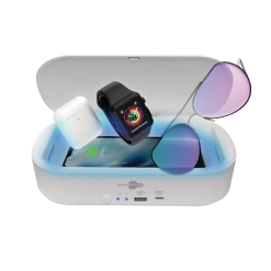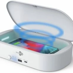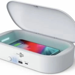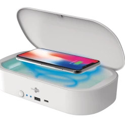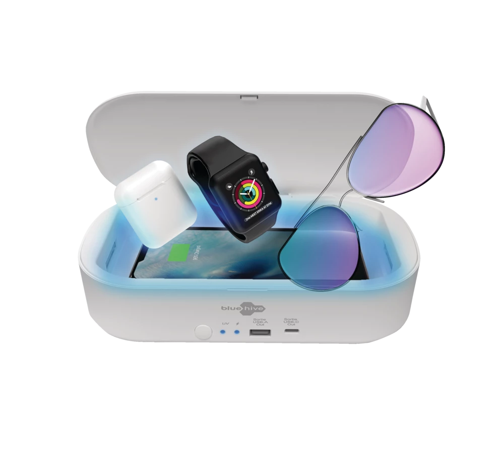 - Bluehive UV Phone Sanitizer with Wireless Charger features a 3-minute sanitization cycle