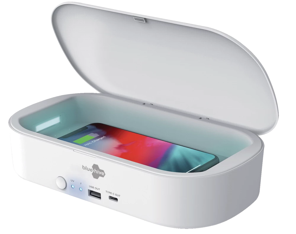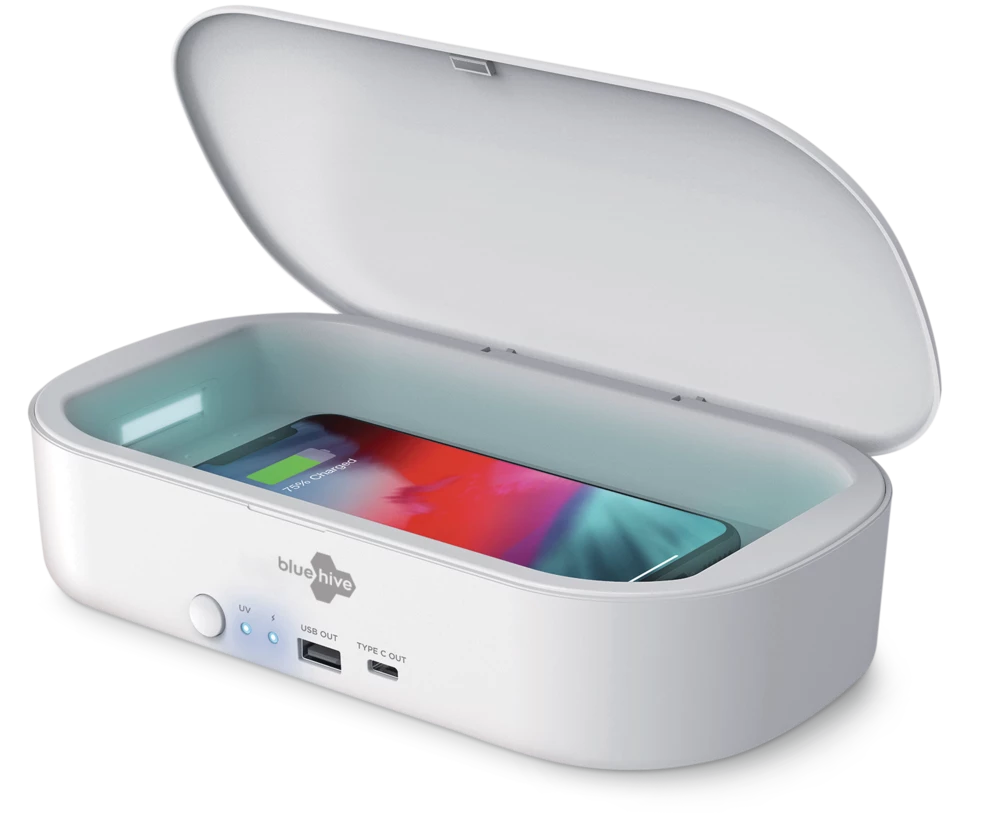 - Bluehive UV Phone Sanitizer features a 3-minute sanitization cycle