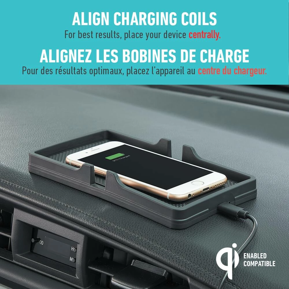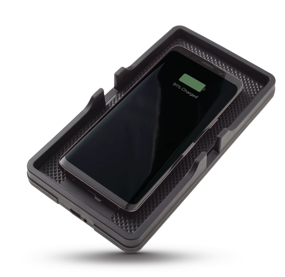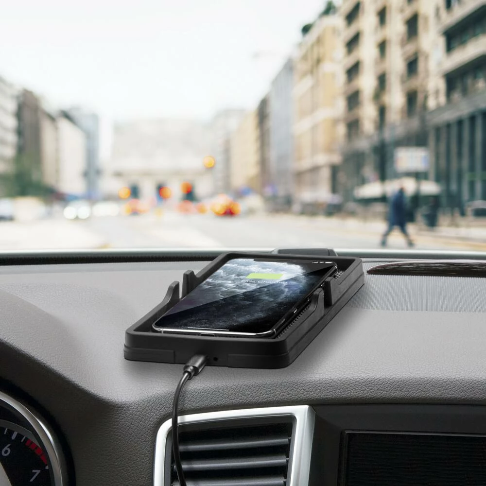 - Wirelessly charge your phone in the office, on your car’s dashboard or any flat surface