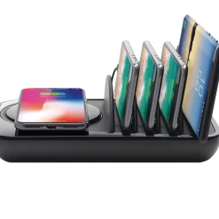 - Includes three standard USB-A ports, USB-C port and 5W wireless charging pad that is also removable from the station