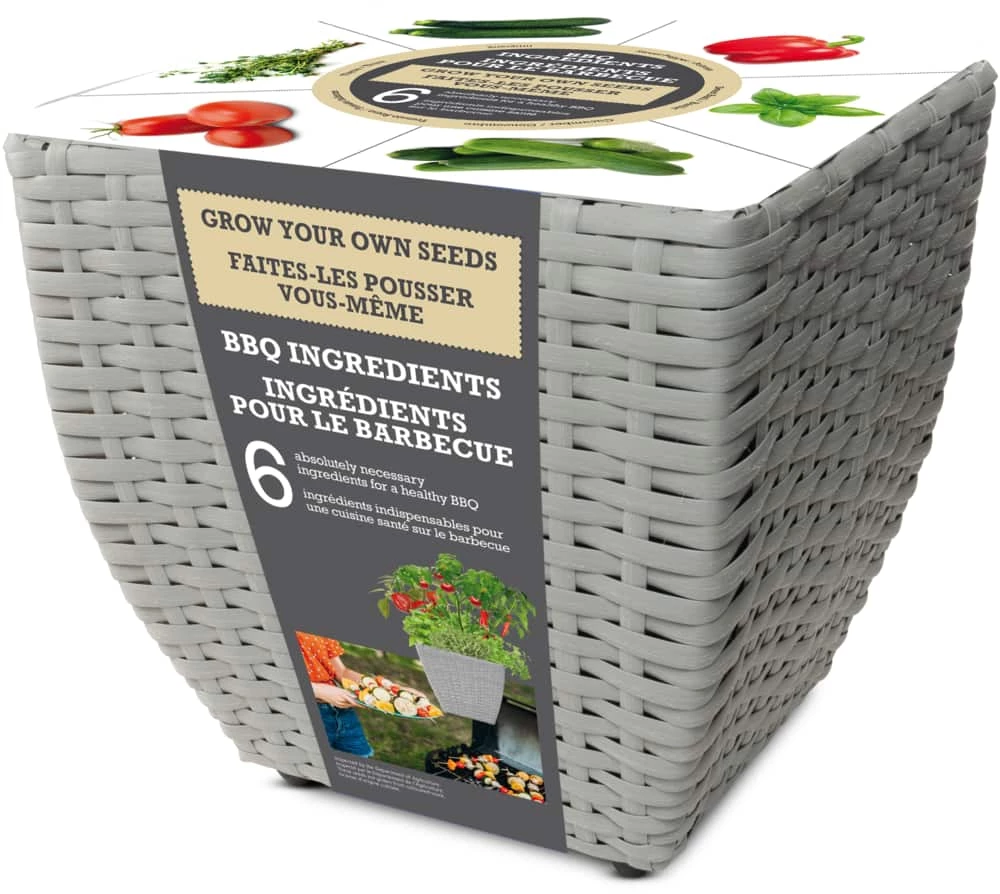 - BBQ Kit Includes (3996183): Thyme, Sweet Basil, Cucumber, Sweet Pepper, Tomato Roma, Zucchini Seeds