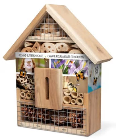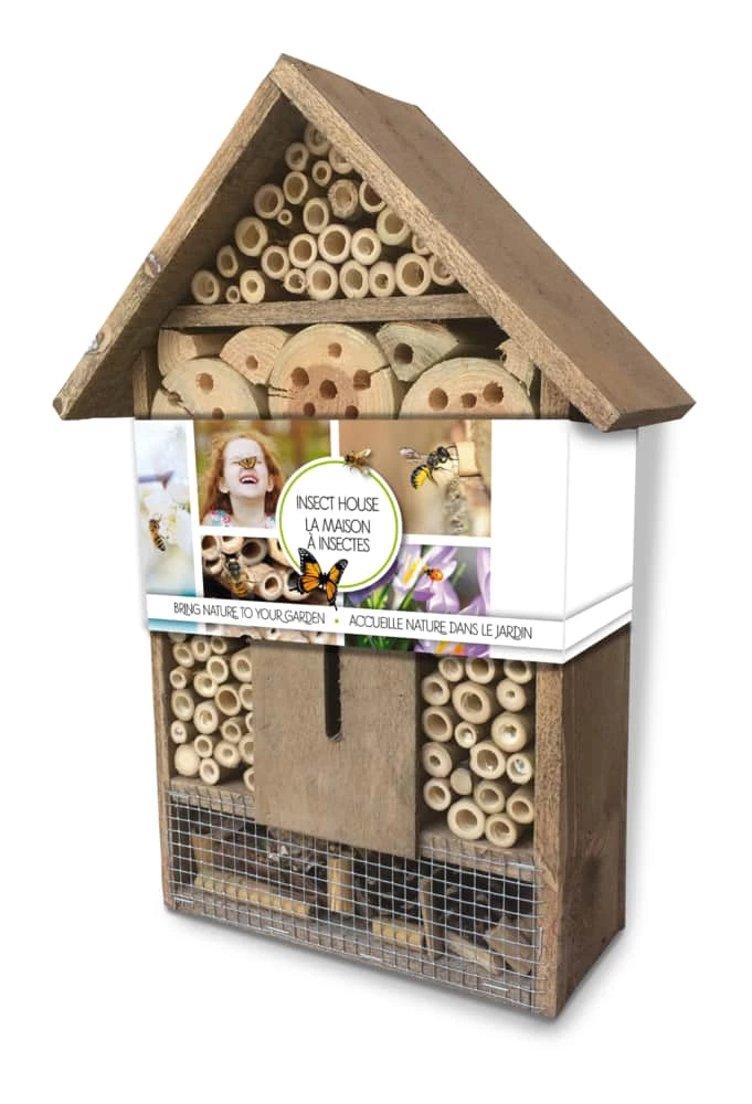 - Install this wooden Insect House or Insect Hotel in your garden to welcome pollinating butterflies and solitary bees, as well as lacewings and ladybugs that help control insect pests